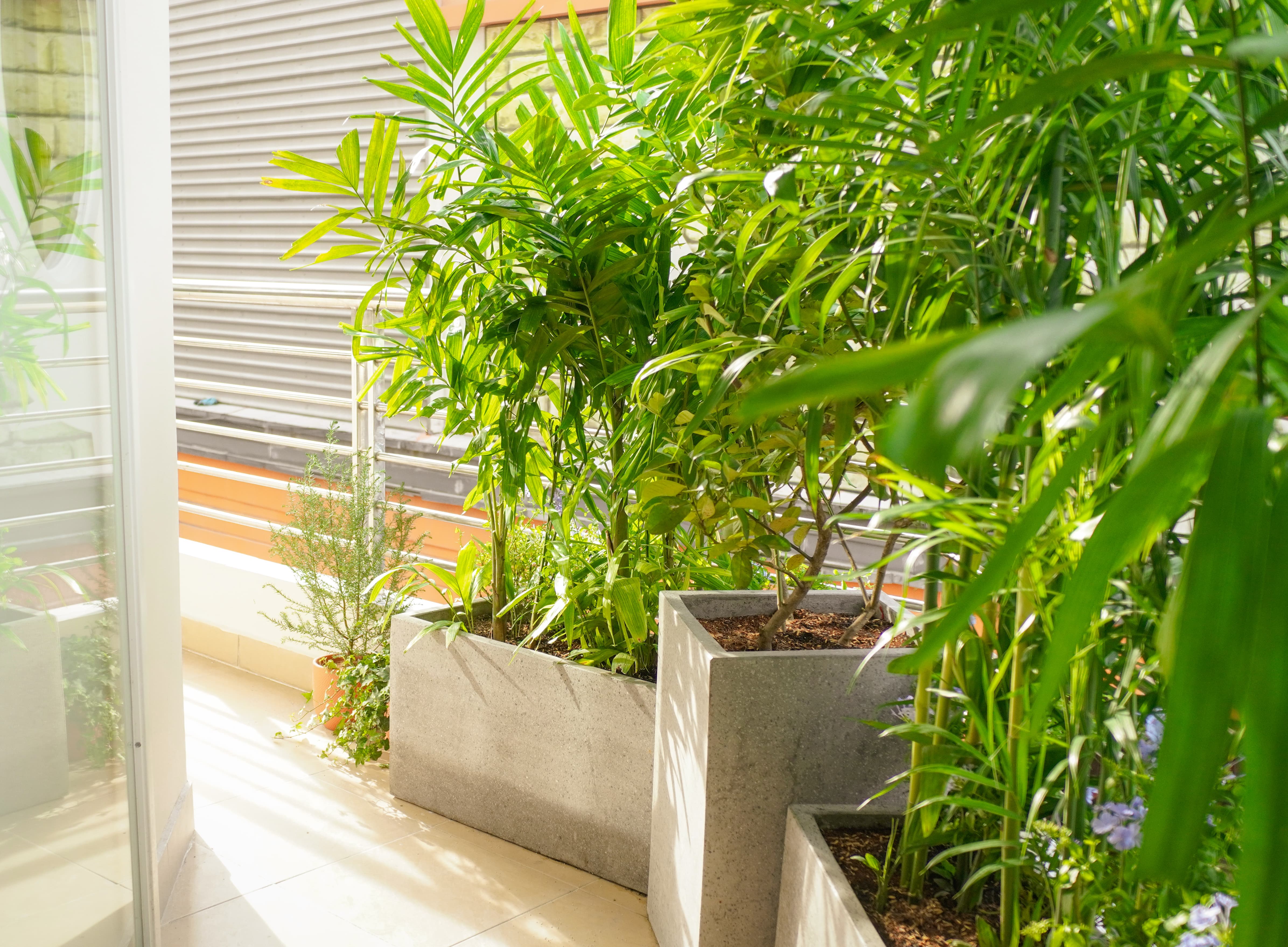 Sự tươi mới của khoảng sân mở, nơi ánh nắng len qua tán cây mang đến cảm giác thư giãn suốt cả ngày.